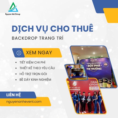 Nguyên Anh Event tự hào là đơn vị hàng đầu trong lĩnh vực cho thuê backdrop và trang trí sự kiện. Với đội ngũ thiết kế và kỹ thuật viên chuyên nghiệp, chúng tôi cung cấp các giải pháp backdrop đa dạng cho hội thảo, hội nghị và các sự kiện đặc biệt, từ thiết kế đến thi công trọn gói.